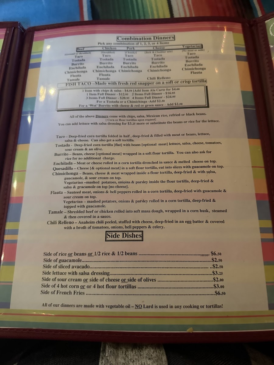 - Classic Mexican staples like fish tacos, enchiladas, and taco salads